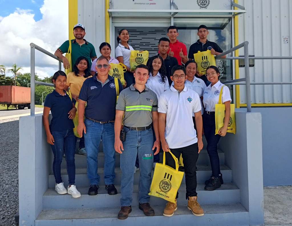 La visita fue liderada por el profesor Mgtr. Miguel López, quien acompañó a los estudiantes en un recorrido técnico por las instalaciones de Café Durán, una de las unidades productivas de EPA. Durante la jornada, los participantes fueron recibidos por un equipo de profesionales altamente capacitados, entre ellos: Ing. Julio Aparicio, Supervisor de Producción, Ing. Ezequiel González, Supervisor de Producción, Ing. Rosa Sánchez, Gerente de Planta y la Ing. Sol Villa, Analista de Operaciones.