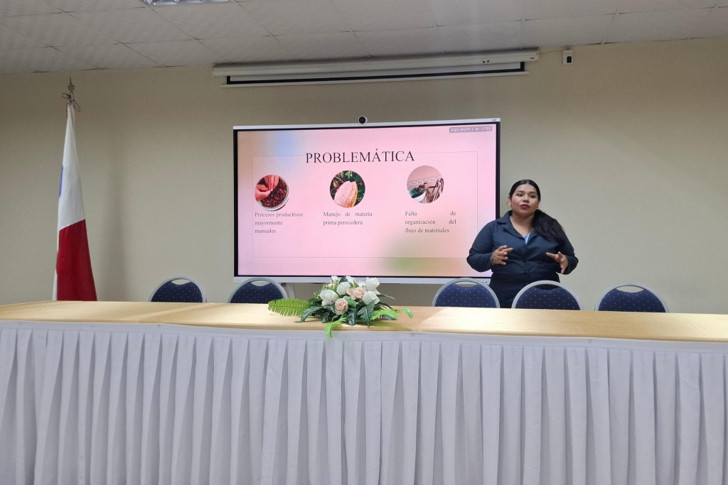 La estudiante Ivis García, de la Licenciatura en Logística y Transporte Multimodal del Centro Regional de la Universidad Tecnológica de Panamá (UTP), en Veraguas, sustentó su trabajo de graduación teórico-práctico titulado: “Propuesta de mejora en el flujo de materiales en el proceso de producción de chocolates artesanales en la Finca Rosa Elvira”. La sustentación se realizó el lunes 9 de febrero en la Sala de Conferencias #1 del Centro Regional.